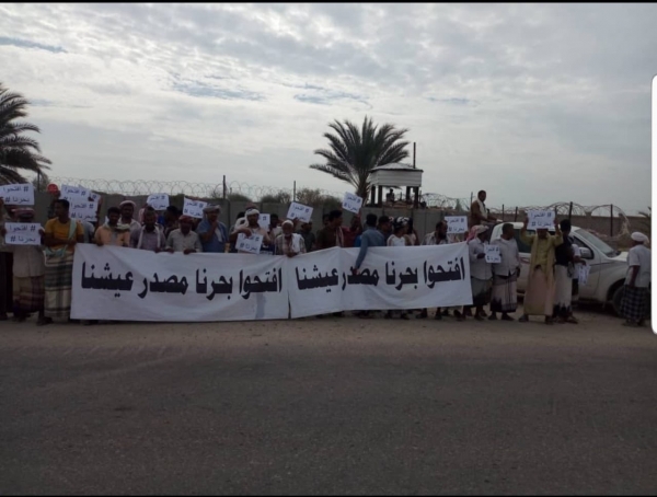 و نظم الصيادون وقفات احتجاجات أمام مطار الريان بالمكلا، الذي تتخذ منه القوات الاماراتية مقر لها.