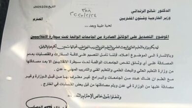وزارة التعليم العالي بعدن توجه القنصليات بشأن التصديق على وثائق الجامعات الواقعة في مناطق سلطة صنعاء